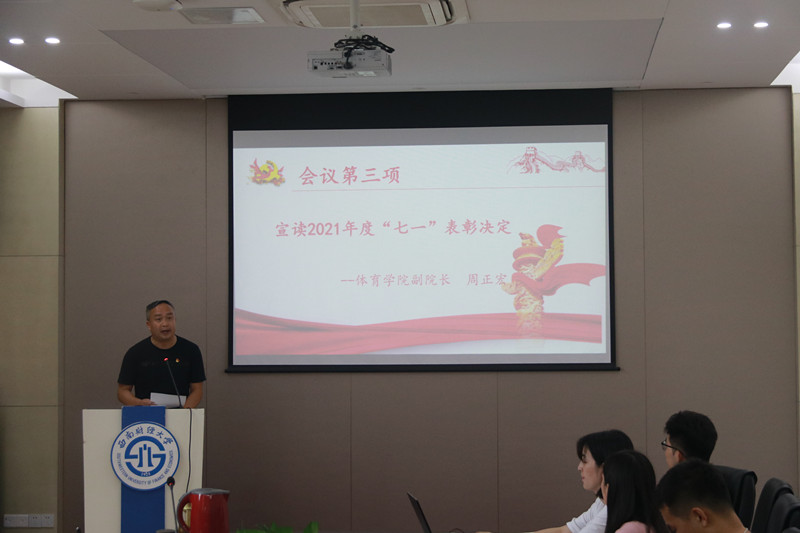 全体师生党员参加,副书记李治主持会议。会议在雄壮的国歌声中拉开帷幕。周正宏副院长庄严宣读《好博在线直属党支部关于七一表彰的决定》,对过去一年中为学院工作作出突出贡献的优秀共产党员、抗疫优秀个人、脱贫攻坚先进个人、优秀班主任以及学院党史知识竞赛的获奖个人予以表彰肯定。领导班子依次上台颁奖并合影留念。