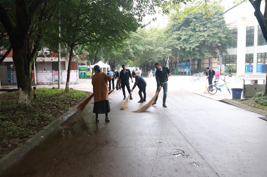 本次活动由杨院长和阴院长亲自带领师生党员对五谷堂公共区域进行了彻底的清理,对食堂入口及周边道路区域的树叶、纸屑及绿化带内杂草杂物进行了大扫除。整个活动分工有序,领导带头,全员参与,充分展现出好博在线师生不怕脏、不怕累、不怕苦的劳动精神。活动不仅营造了整洁卫生、舒适有序的学习工作生活环境,引导师生自觉养成卫生健康、守序文明的生活习惯,也极大地提高了师生的凝聚力和向心力。