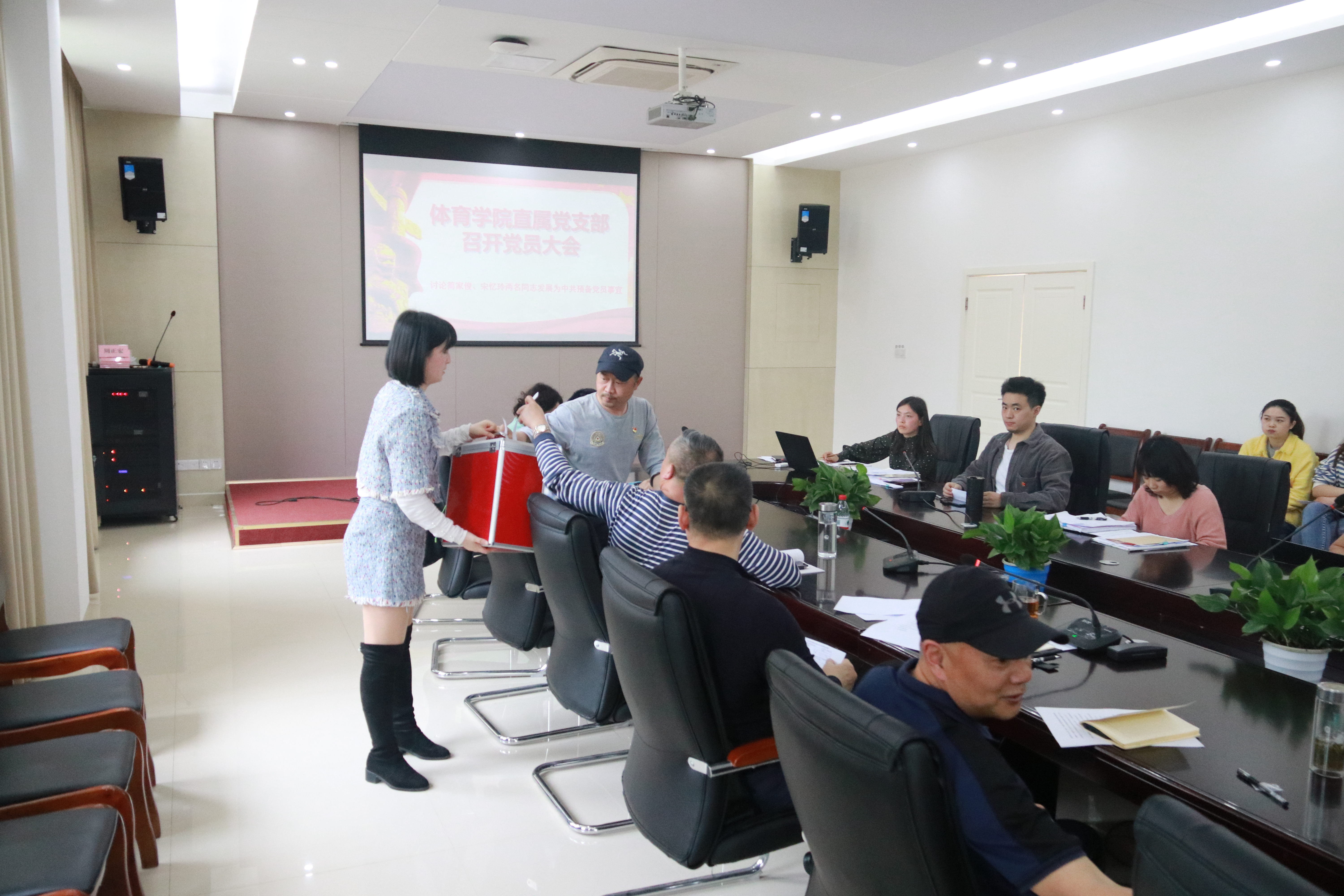 3月30日,好博在线直属党支部在游泳池二楼会议室召开全体党员大会,讨论审议关于简家俊和宋忆玲两名入党积极分子转为中国共产党预备党员的申请事宜。好博在线直属党支部全体党员参会,应到50人,实到35人。会议由直属党支部书记杨远波主持。