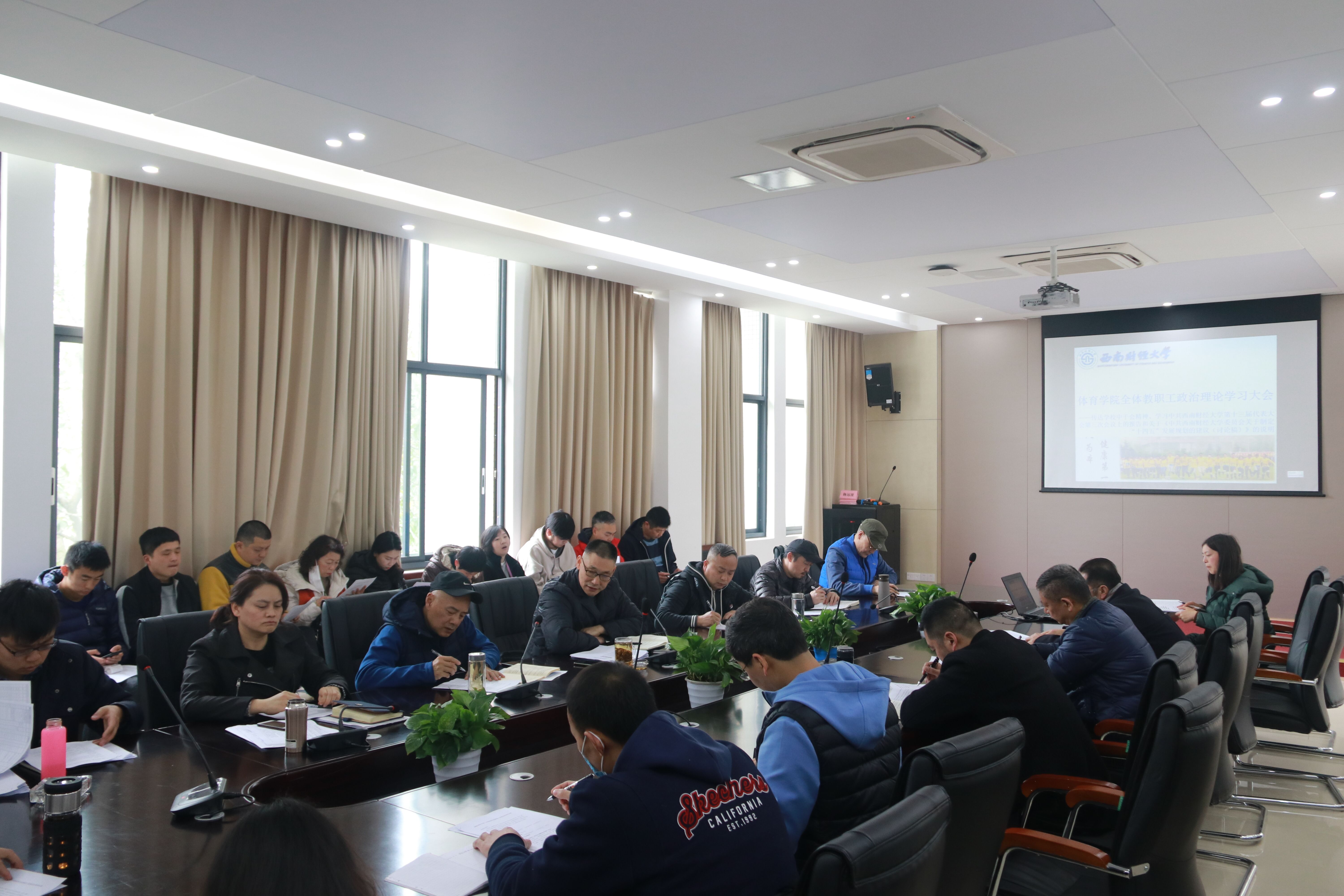 3月9日,好博在线在游泳池201会议室召开全体教职工政治理论学习会,传达学校中干会精神,学习《在中共西南财经大学第十三届代表大会第三次会议上的报告和关于< 中共西南财经大学委员会关于制定“十四五”发展规划的建议(讨论稿)>的说明》。学院全体教职工参会,会议由杨远波院长主持。