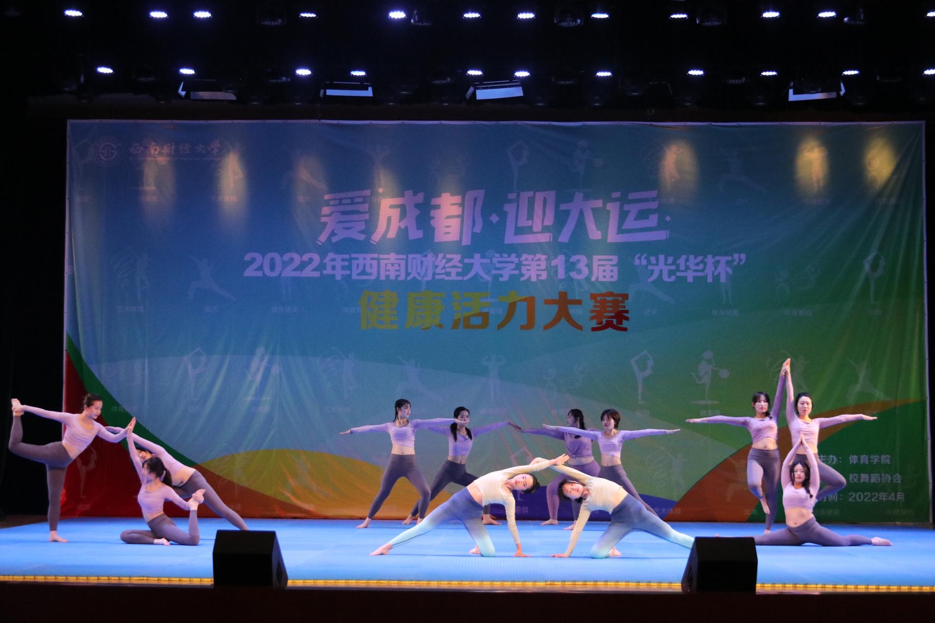 为迎接第31届世界大学生夏季运动会的到来,提升学校体育在学生道德教育、智力发展、身心健康、审美素养和健康生活方式形成中的多元育人功能,五育融合,4月18日—22日,2022年西南财经大学第13届“光华杯”健康活力大赛在学生活动中心800人厅圆满举行。