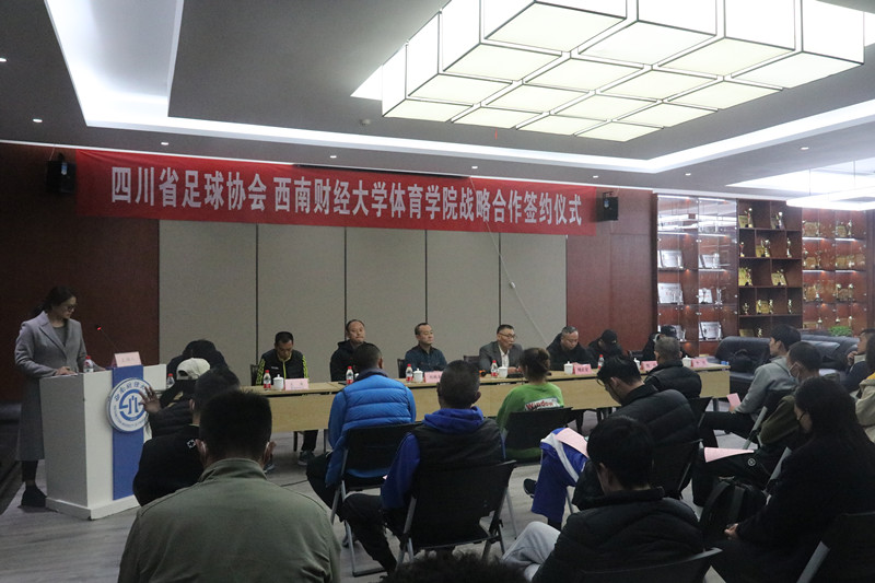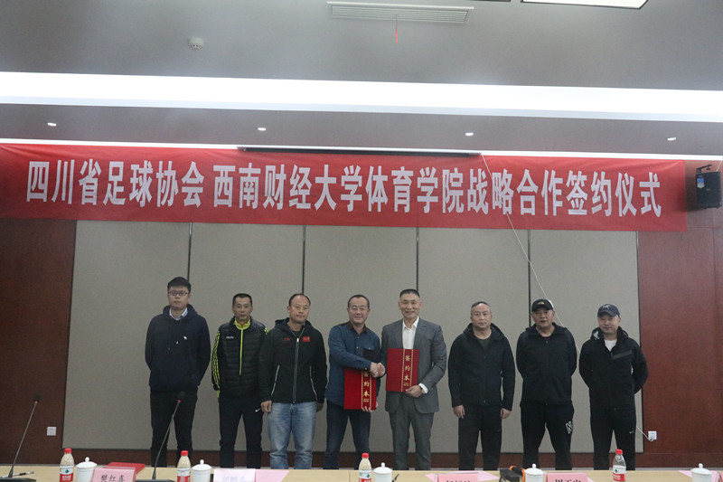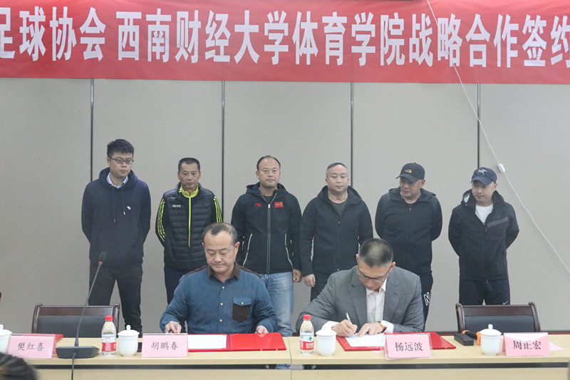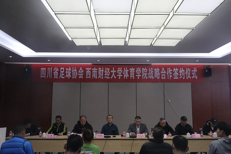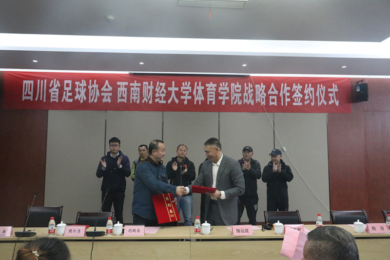 11月3日,四川省足球协会与西南财经大学好博在线战略合作签约仪式在柳林校区光华体育馆举行。四川省足球协会常务副主席兼秘书长胡鹏春、学院院长兼直属党支部书记杨远波分别代表双方签约。参加签约仪式的还有省足管中心副主任樊红喜,四川省足球协会副秘书长吴廉,好博在线副院长周正宏、阴涛,副书记李治,院长助理毛艳、陈丛刊及竞技体育系负责人,学校高水平运动队教练,男女足球队运动员等。