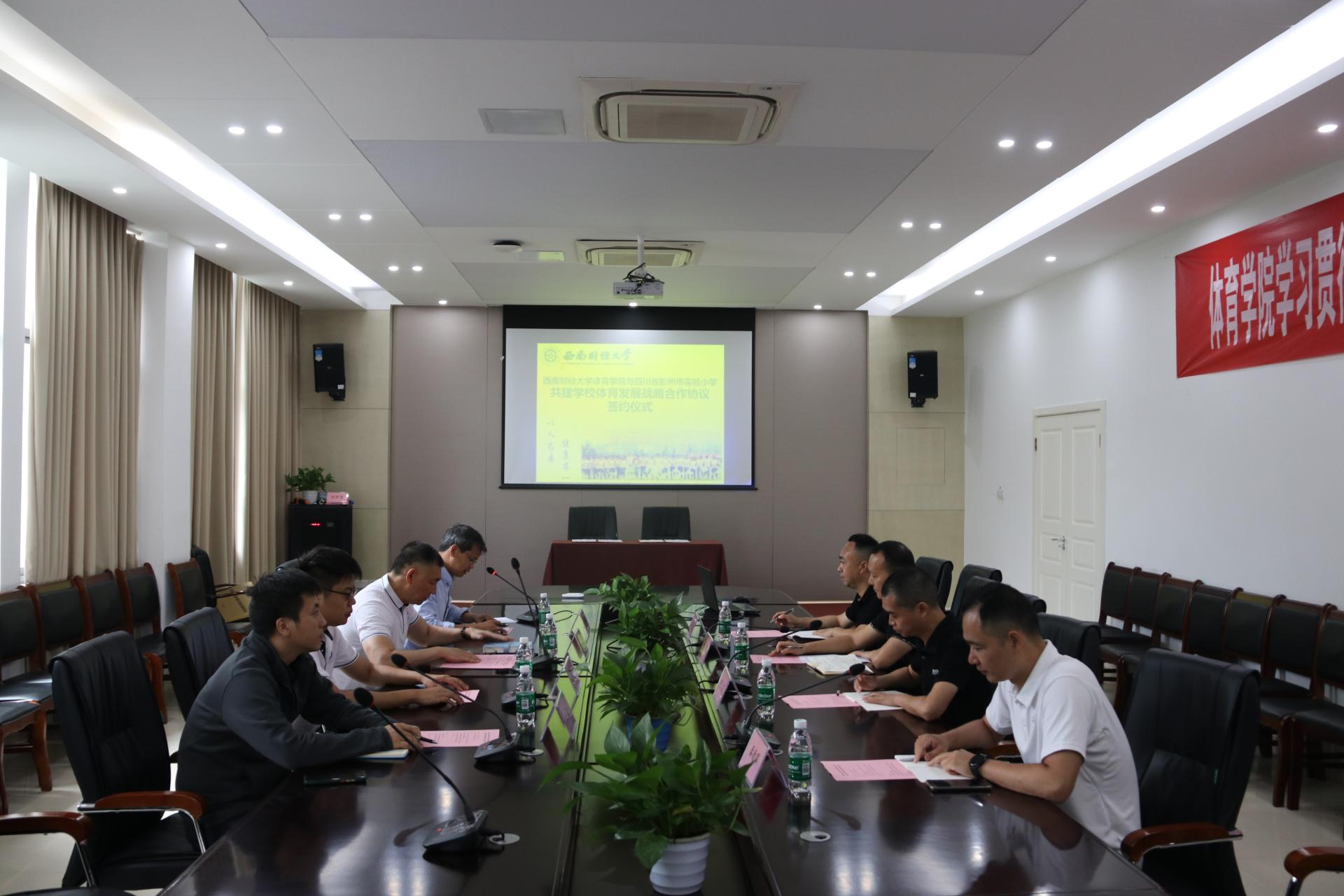 杨远波院长对胥勇校长一行的来访表示欢迎,他指出高校与中小学共建学校体育发展战略合作关系,是为了进一步贯彻落实党中央、国务院和四川省委、省政府关于全面加强和改进新时代学校体育工作,深入推进体教融合工作的决策部署,践行高等院校与中小学协同育人,全面提升学校体育发展水平,全面推动学校体育工作提质增效的重要举措。