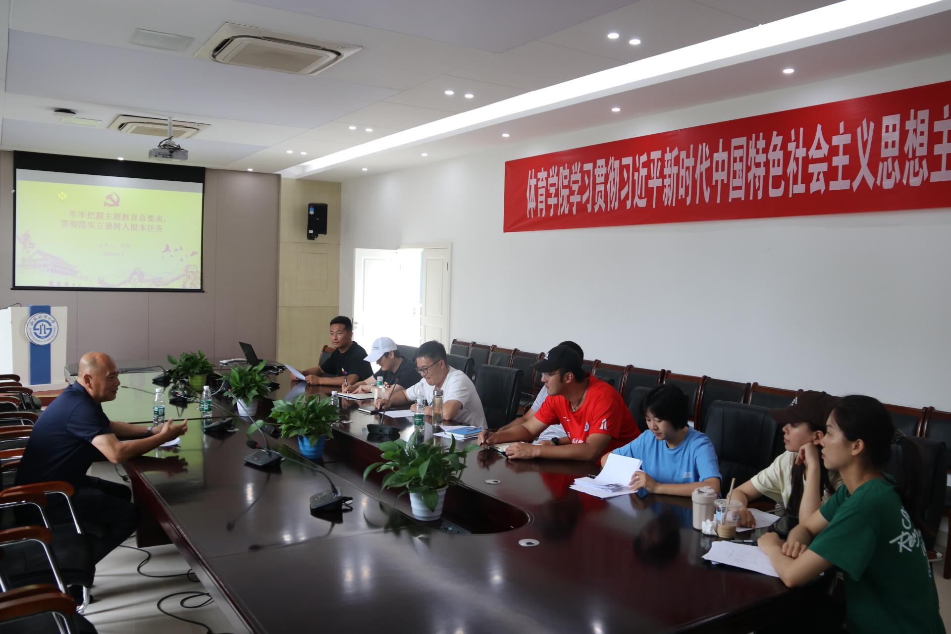 6月6日,院长杨远波以《学习贯彻习近平新时代中国特色社会主义思想 全面加强和改进新时代学校体育工作 新征程奋力推动学院体育事业高质量发展》为题,围绕“为何学”“学什么”“怎么学”“怎么干”等方面,为教师第一党支部讲授主题教育专题党课,全面掌握习近平新时代中国特色社会主义思想的世界观和方法论,在深学细悟中坚定理想信念,在实干笃行中增强能力本领,切实将学习成果转化为教书育人、运动训练和学习知识的实际行动。