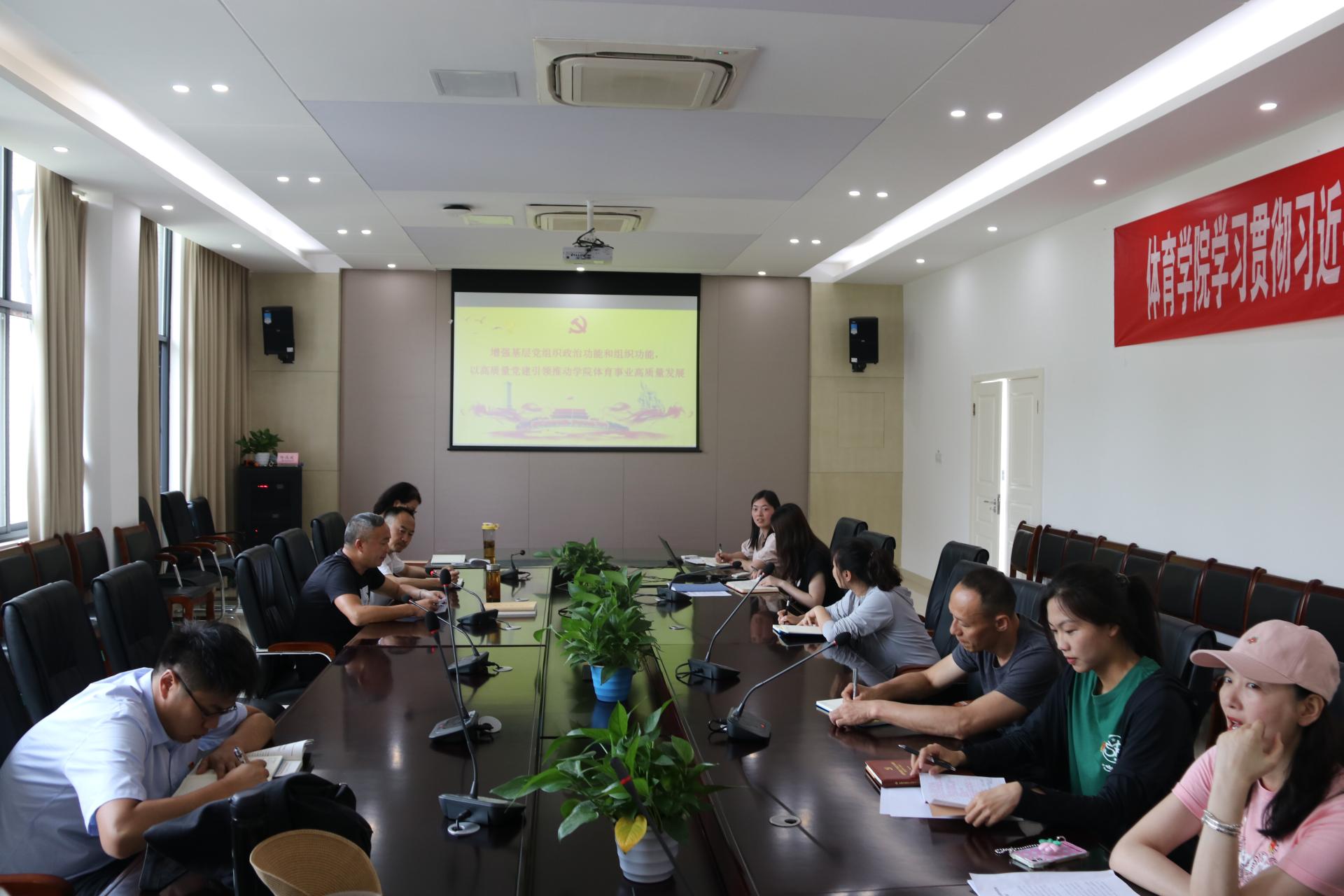 5月30日,院党委书记周正宏以《增强基层党组织政治功能和组织功能,以高质量党建引领推动学院体育事业高质量发展》为题,联系教师第二党支部讲授主题教育专题党课,深刻阐述开展主题教育的重大意义和目标要求,重点围绕如何落实重点措施推动主题教育走深走实,强调要用“四个坚持”着力于增强党组织政治功能和组织功能,推动学院党建工作提质增效。
