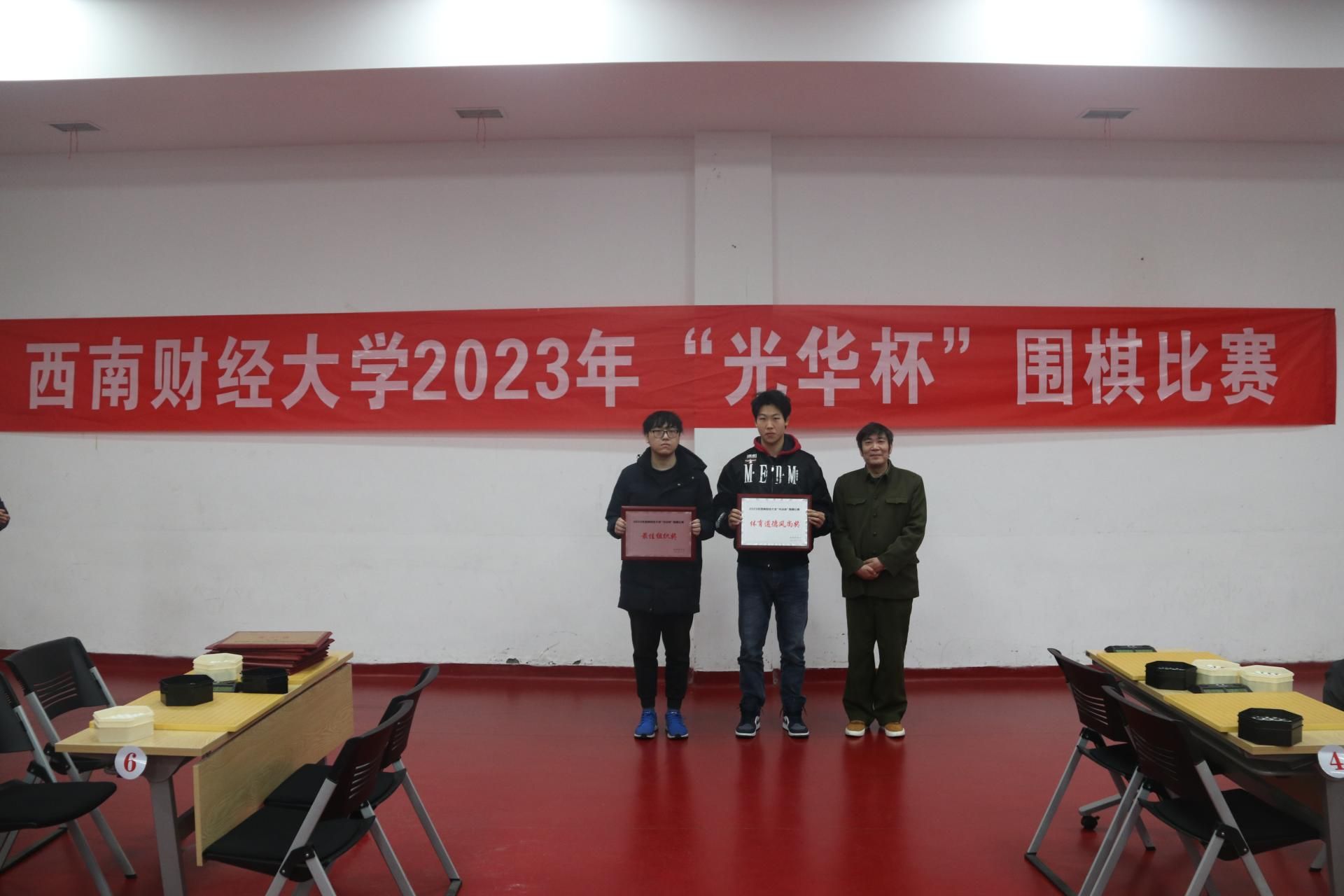 12月17日下午,“礼赞新时代·奋进新征程,迎百年校庆·铸西财辉煌” 2023年西南财经大学“光华杯”首届围棋比赛颁奖仪式在柳林校区光华体育馆举行。好博在线杨远波院长、阴涛副院长出席并为获奖单位及个人颁奖。
