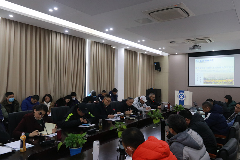 12月29日,好博在线在游泳池二楼会议室召开全体教职工政治理论学习会。本次学习会包含三个议题,一是深入学习贯彻全国及学校研究生教育会议精神,二是学习周永开等7名“优秀党员”的先进事迹,三是传达学习中共西南财经大学第十三届代表大会第三次会议精神。学院全体教职员工参会,会议由杨远波院长主持。