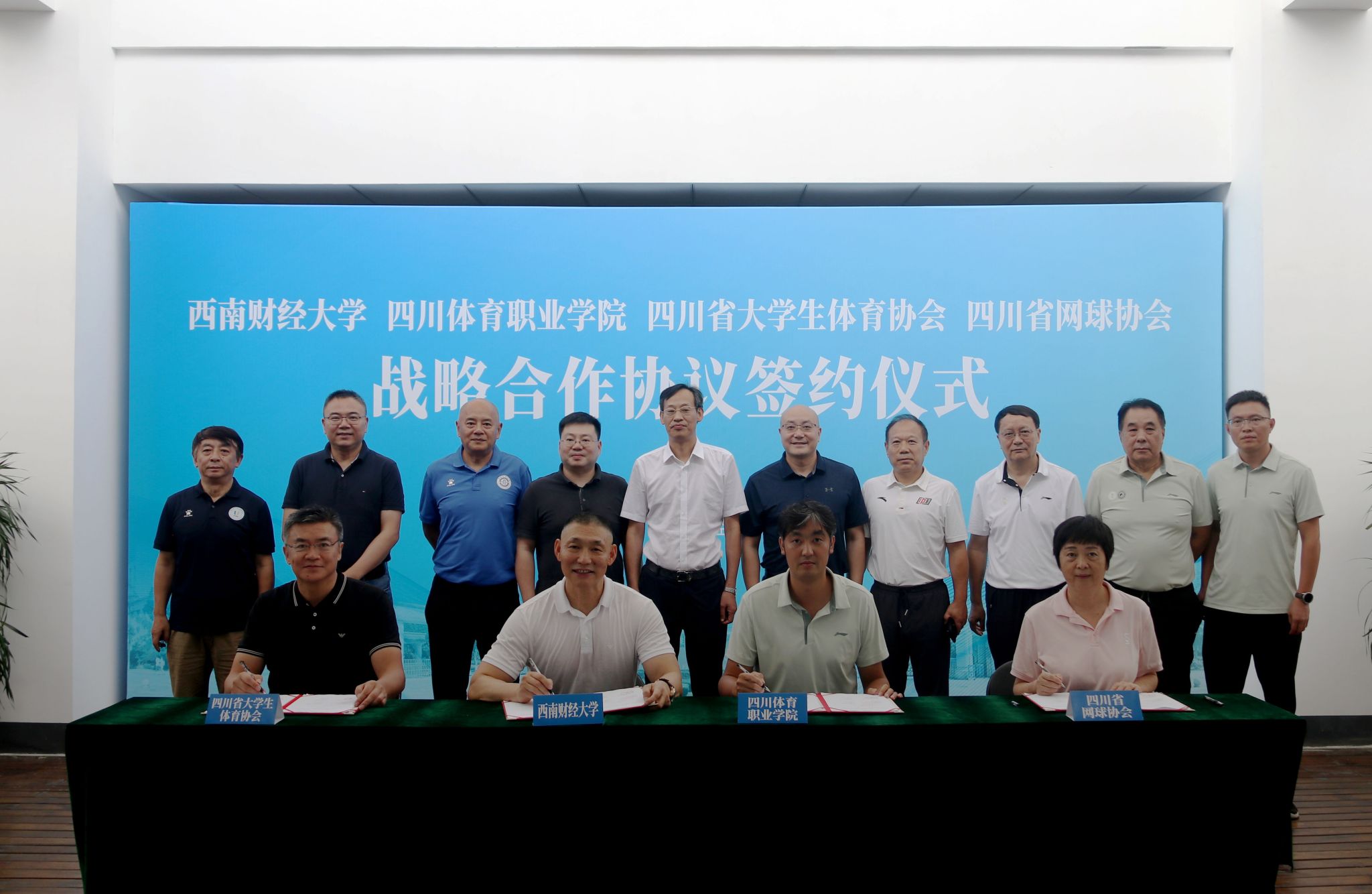 7月19日,学校与四川体育职业学院、四川省网球协会、四川省大学生体育协会四方战略合作协议签约仪式在光华校区体育馆举行。四川体育职业学院党委副书记刘汉权,四川省大学生体育协会秘书长刘江,四川省网球协会会长罗茂乡以及四川省网球运动管理中心、四川省大学生体育协会和四川省网球协会相关负责人;学校党委常委、副校长桂富强,国内合作与发展处、好博在线相关负责人及教师代表参加仪式。