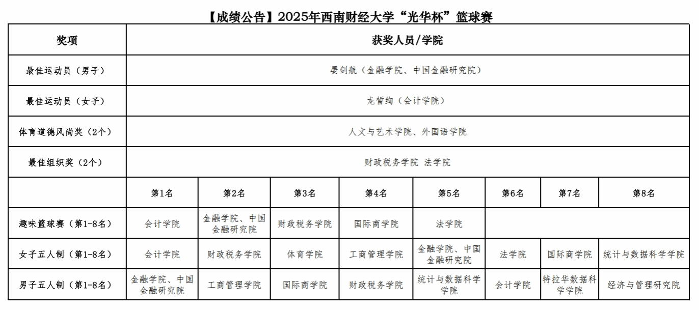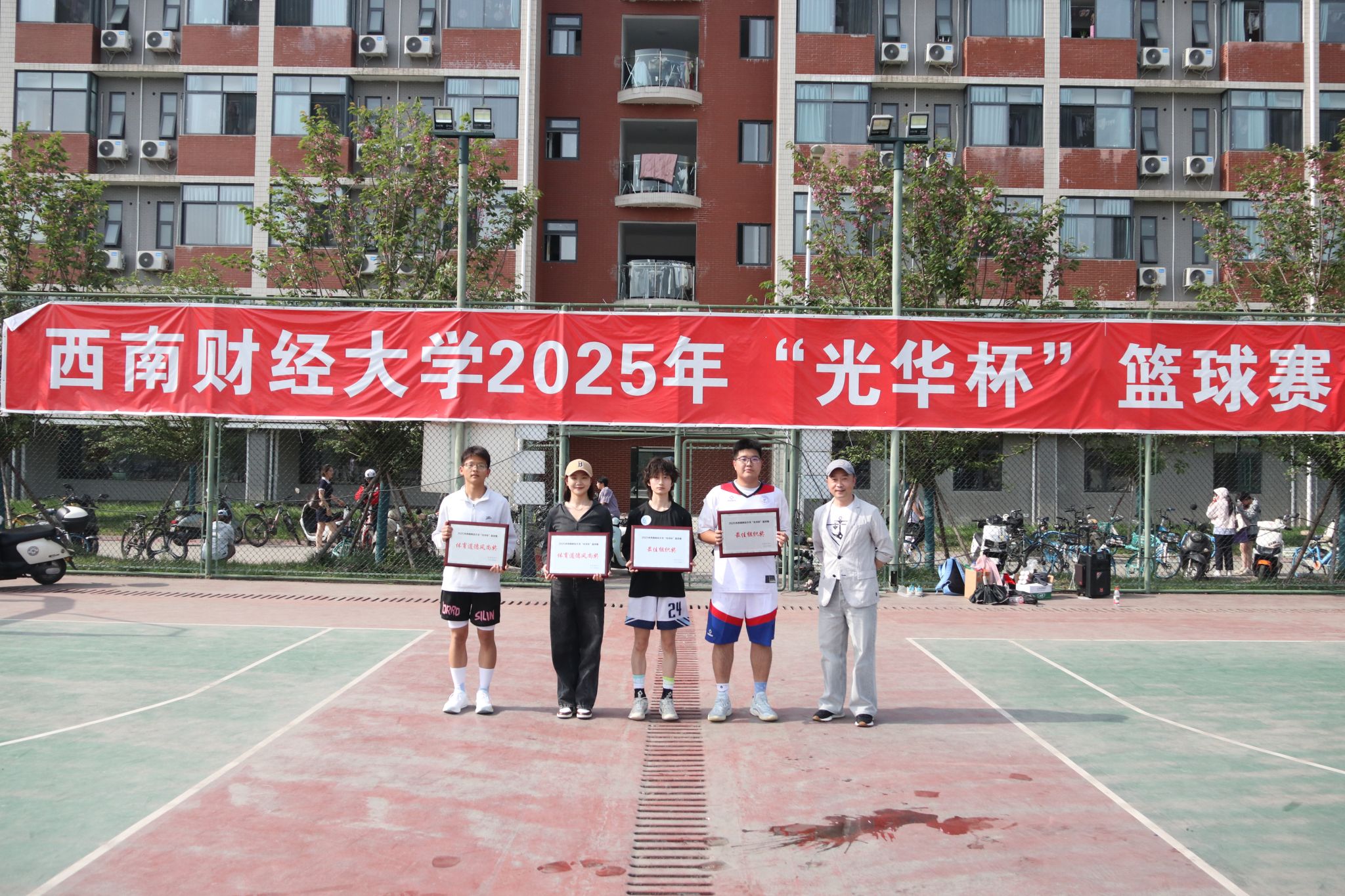 4月15日下午,2025年西南财经大学 “光华杯”篮球赛颁奖仪式在晨曦篮球场举行。好博在线副院长陈丛刊(主持工作)、党委副书记、纪委书记李治及相关部门负责人为获奖学院及个人颁发了荣誉证书及奖牌。