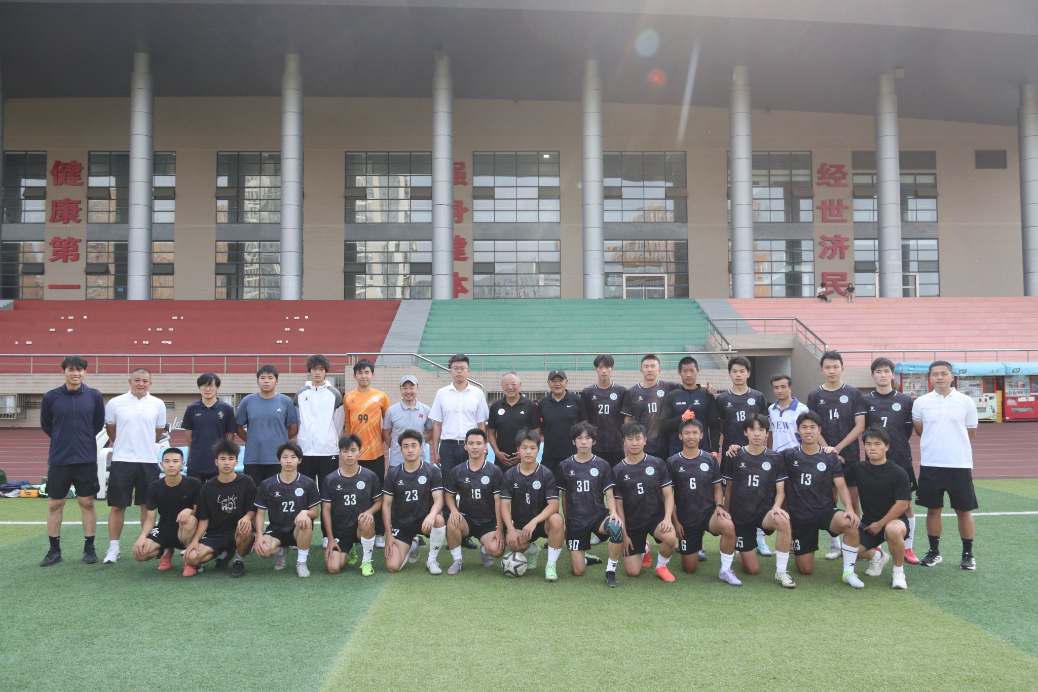 为备战 2024-2025 全国青少年校园足球联赛专业组全国总决赛,西南财经大学高水平男子足球队特邀中国足坛功勋教练余东风进行赛前指导。6 13 17 点,西南财经大学男子高水平足球队受甘孜藏族自治州足球代表队邀请,在学校晨曦运动场进行了一场激烈的友谊热身赛。特邀余东风指导,学院党委书记周正宏,副院长(主持工作)陈丛刊以及其他班子成员、教练团队进行了现场观赛。