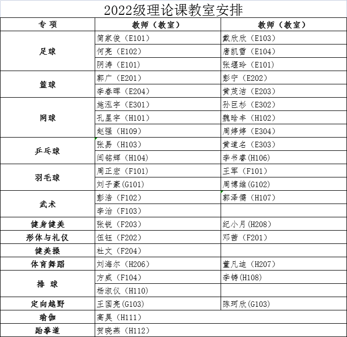 各学院: 经教务处同意,本学期2022级本科生第1周体育课为好博(中国)理论课,9月5日起恢复户外教学。根据教室资源状况,现将理论课具体安排通知如下: