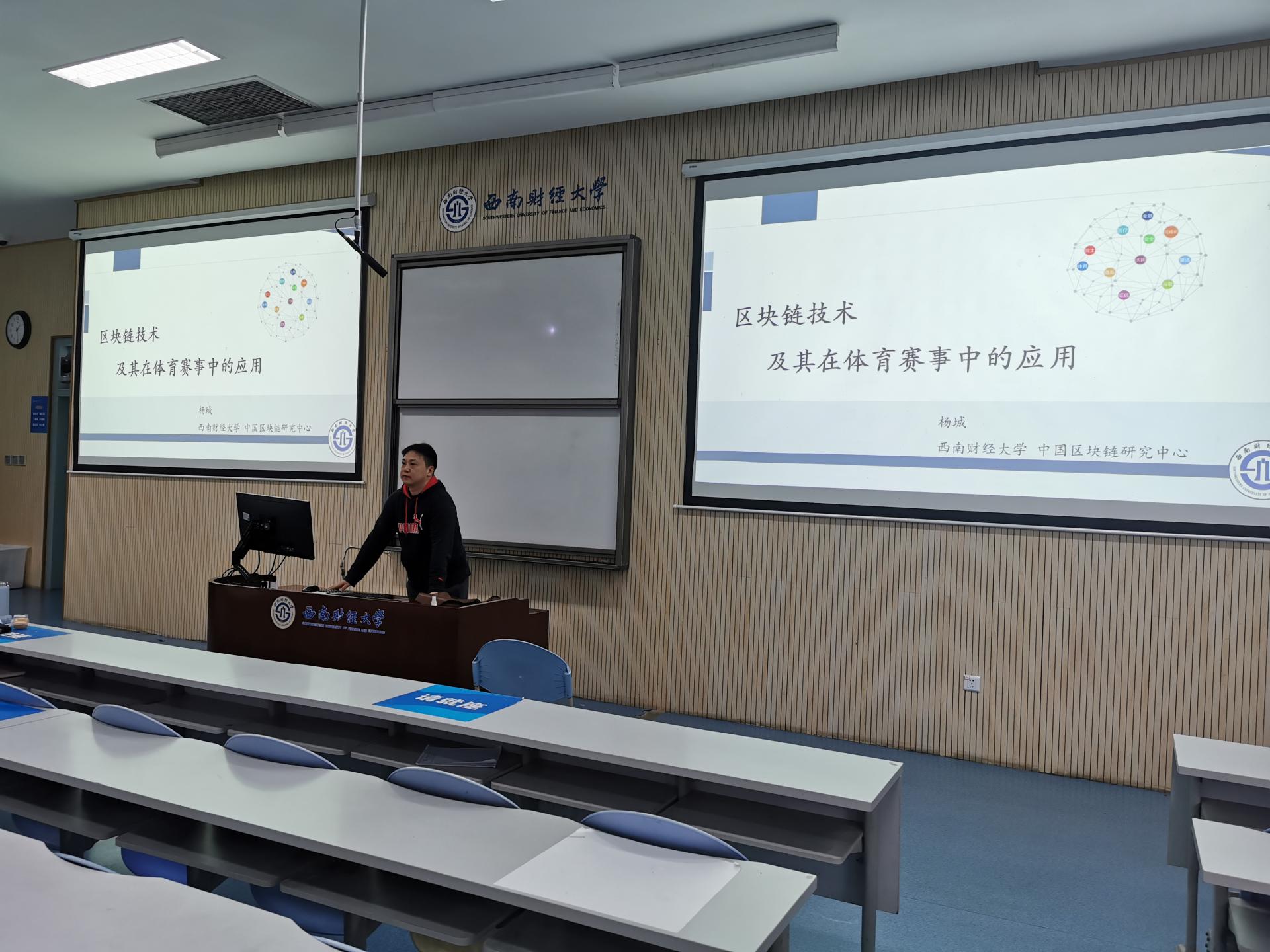 10月9日晚,西南财经大学区块链研究中心、经济信息学院副教授,计算机应用专业博士、美国德州理工大学访问学者杨城老师在光华校区明德楼201教室举办了题为《区块链技术及其在体育赛事中的应用》的光华讲坛。黄道名教授主持本次讲座,好博在线、经济信息学院部分师生参加。