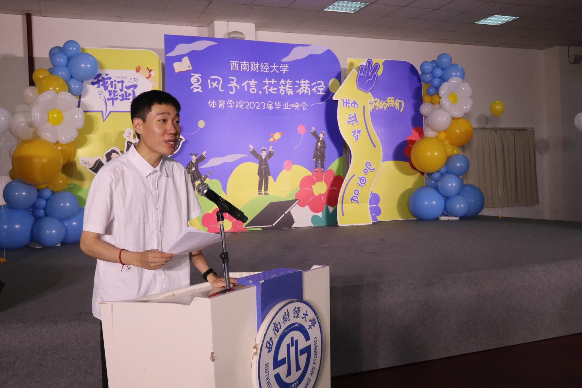好博在线院长杨远波教授首先致辞,祝贺学院2023届毕业生顺利完成学业,踏上新的人生旅途,同时向辛勤付出的老师们表示最诚挚的敬意。他希望同学们牢记习近平总书记嘱托,胸怀天下立大志,培根铸魂明大德,锐意进取成大才,实干笃行担大任,坚定理想信念,永远听党话、跟党走,矢志奉献国家和人民,成为在社会主义现代化建设中可堪大用、能担重任的栋梁之才。叮嘱同学们秉承“睿智健体、经世济民”的西财体育人文精神,让青春在体育强国建设中绽放绚烂之光。