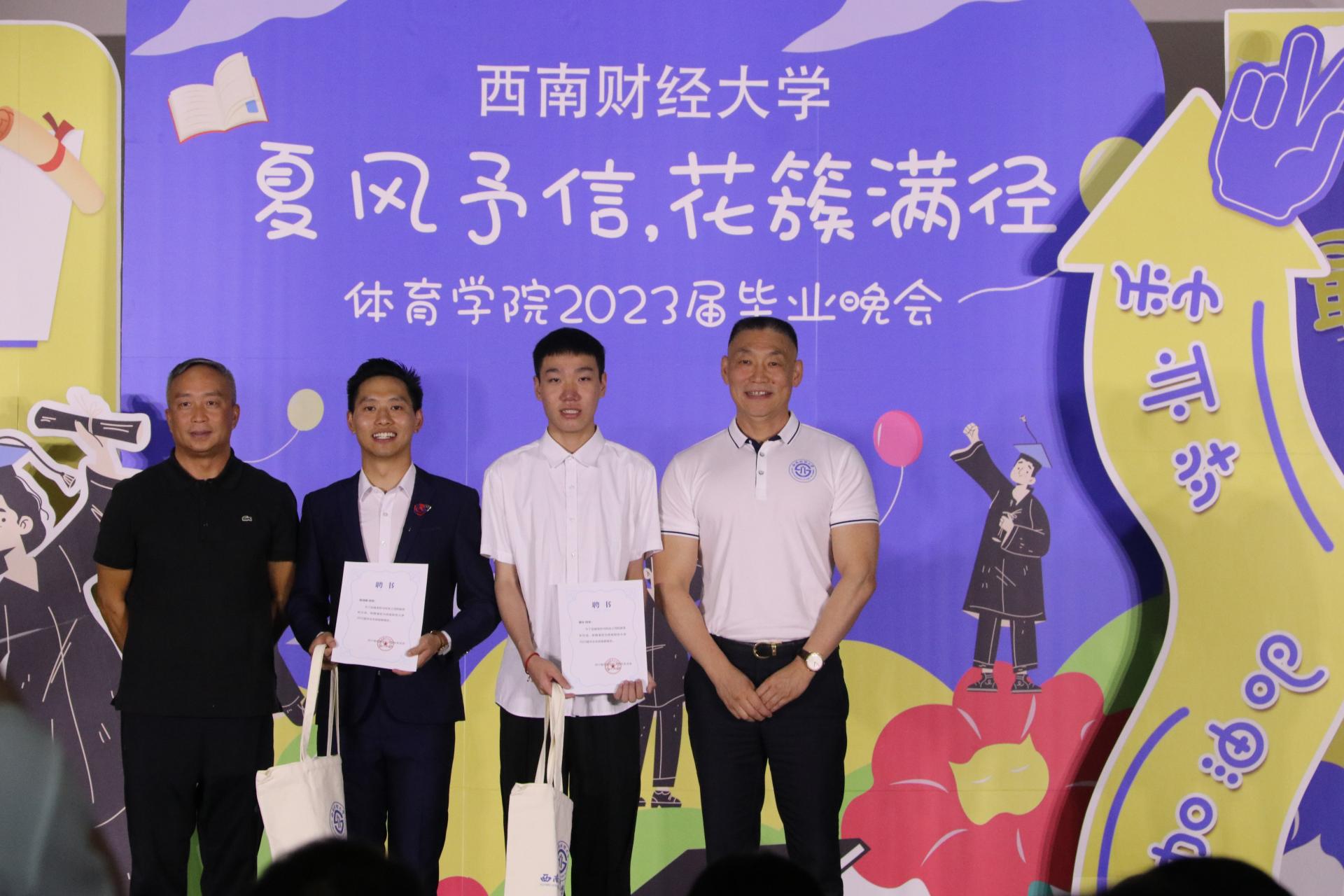 毕业生代表陈佳辉同学发言,感谢学校、学院的培养以及老师们的辛勤付出。随后,院长杨远波教授、书记周正宏教授向曾宇、陈佳辉同学颁发校友联络员聘书。